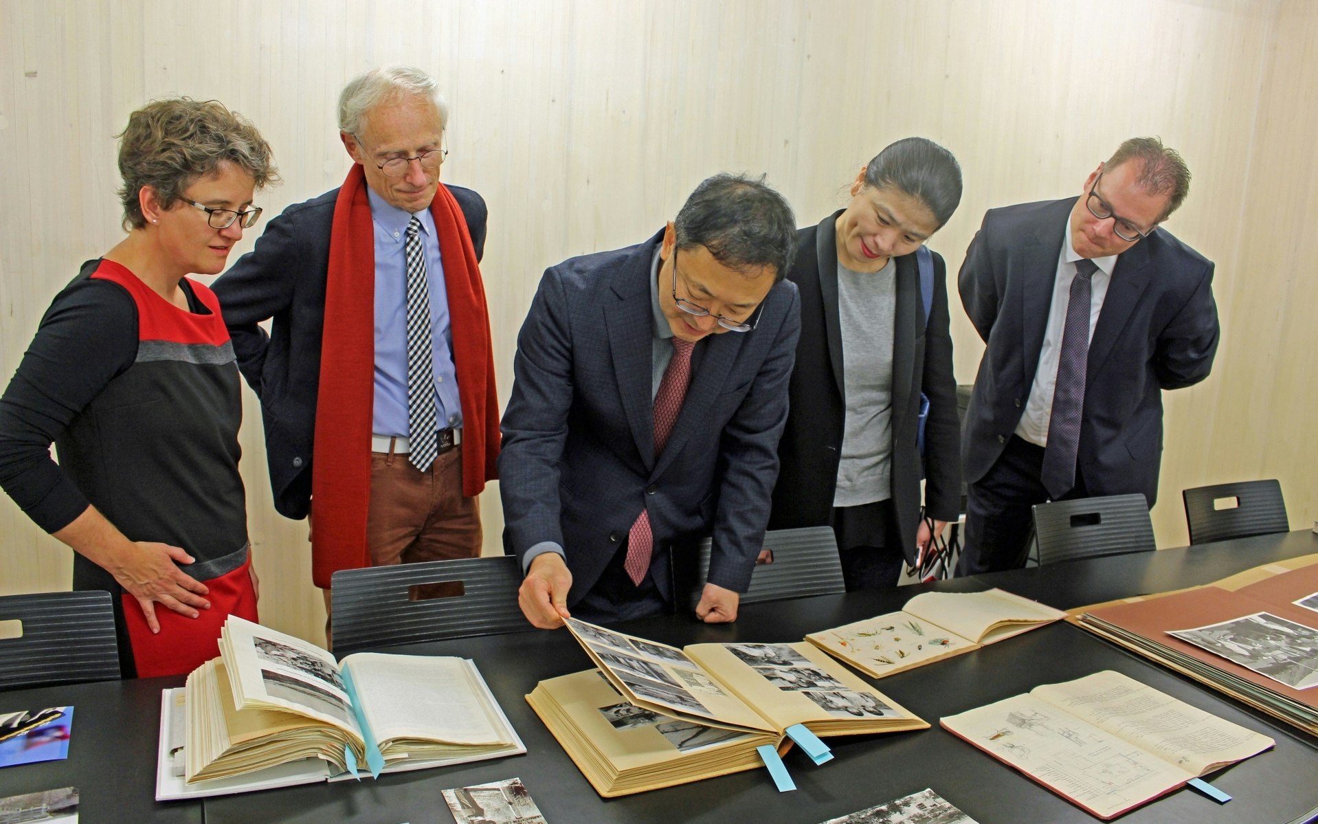 As the person in charge of the BiG's collections, Christine Rohr-Jörg introduced Ambassador Kwon to a selection of particularly impressive items, including a length of barbed wire taken from the border region and a white band that once delineated the demarcation line between North and South Korea. The ambassador then immersed himself in photo albums and diaries that give access to an almost forgotten Korea. He then thanked the BiG in a friendly farewell for its efforts in the conservation of these important items, and for making them accessible to the public.