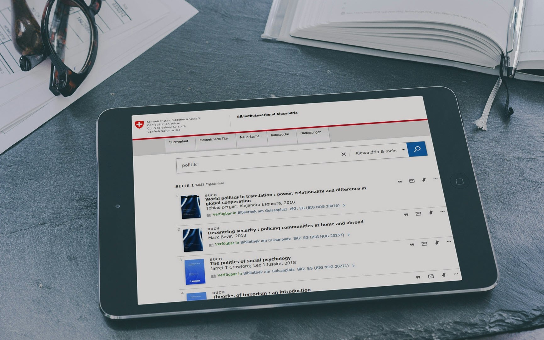 On www.alexandria.ch a new search interfache for the Alexandria library network is now avaiable. In addition to a revised and more modern design, it offers further advantages: