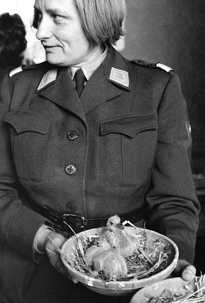 Durante il servizio attivo il servizio dei piccioni viaggiatori è stato supportato per la prima volta da membri del servizio complementare femminile (SCF). La loro istruzione comprendeva l’allevamento, la cura e l’addestramento degli animali.
