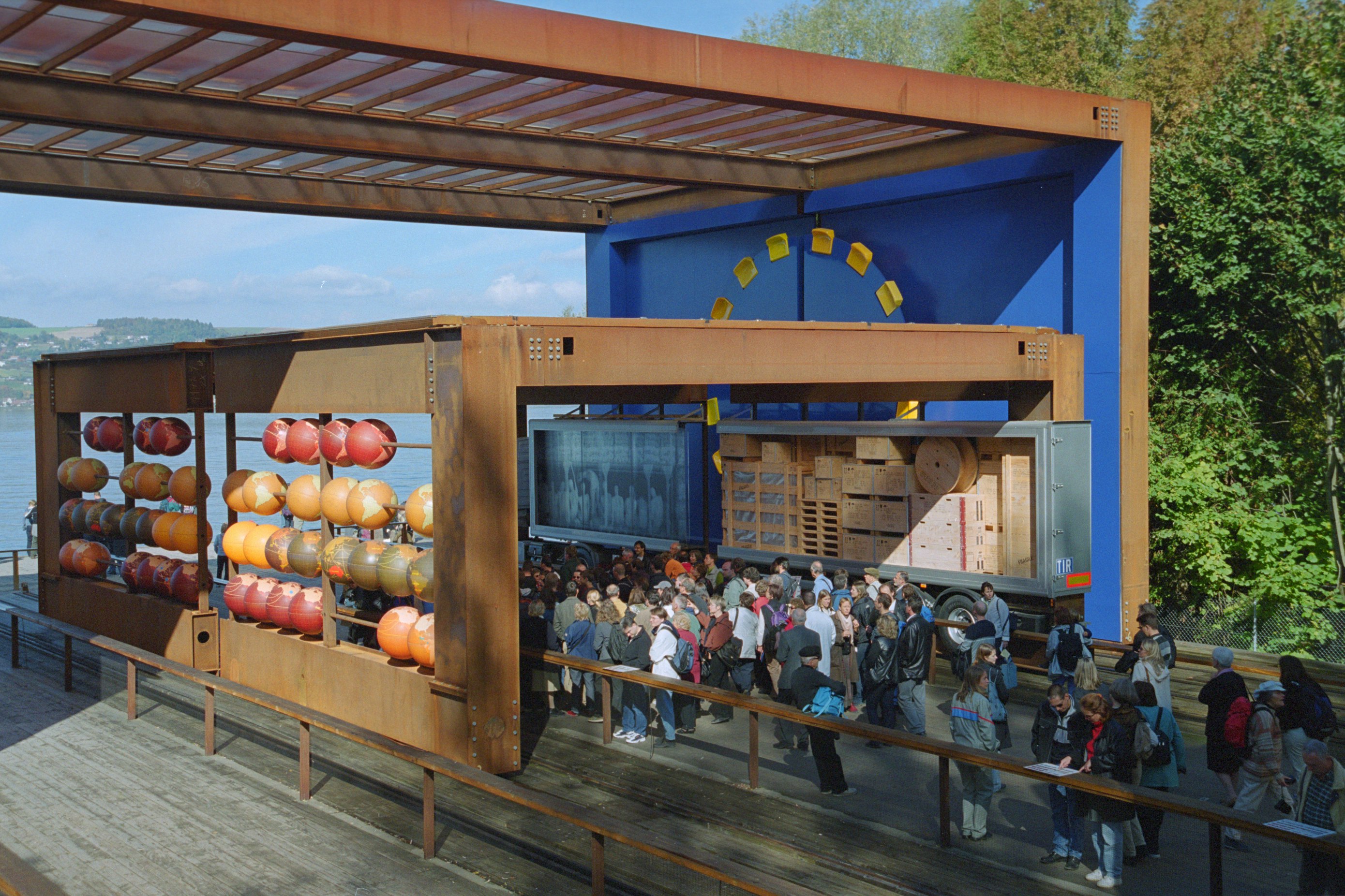 Le due installazioni dell’Esercito svizzero e della Banca nazionale svizzera (BNS) possono essere considerate due esempi di questo nuovo spirito. Con l’installazione «Werft» (cantiere), l’esercito non si è solo presentato come difensore della Svizzera, ma ha anche fatto conoscere le sue missioni di pace all’estero e ha lanciato un dibattito sul ruolo della Svizzera in Europa.