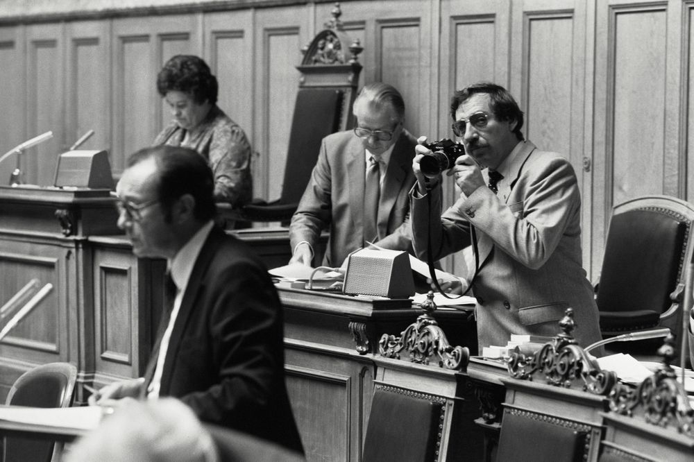 Il fotografo di Palazzo federale Walter Rutishauser ha ritratto l’attività politica in tutte le sue sfaccettature. Fotografava anche la quotidianità e l’attualità del momento. L’immersione nella sua collezione fotografica offre un viaggio nel tempo agli anni tra il 1960 e il 2000.